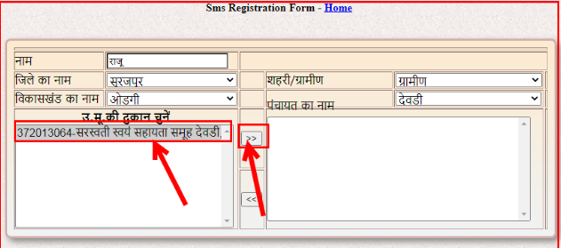 अब दुकान के नाम पर क्लिक कर सेलेक्ट करना है तथा उसके बाद ऊपर भाग में दिए तीर के निशान पर क्लिक है ,इससे सेलेक्ट किया हुआ उचित मूल्य के दुकान का नाम दूसरी ओर आ जाएगा। आप स्क्रीन शॉट से आइडिया भी ले सकते हैं।