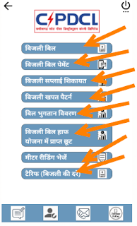 STEP 3.अब मोर बिजली एप्प में बिजली बिल संबंधी प्रदान किये गए सभी सुविधाएँ स्क्रीन पर शो होने लगेगा। तो चलिए सभी सुविधाओं के बारे में बारी -बारी बताते हैं –