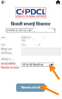 बिजली सप्लाई शिकायत –मोर बिजली एप्प का यह महत्वपूर्ण और उपयोगी सुविधा है। बिजली सप्लाई शिकायत पर क्लिक करते ही शिकायत दर्ज करने हेतु एक पेज open होगा ,इस पेज में उपभोक्ता का नाम और पता और मोबाइल नंबर पहले से ही दर्ज रहेगा आपको विस्तृत पता वाले ऑप्शन पर अपने घर का विस्तृत पता दर्ज करना होगा ,यदि नहीं करना चाहें तो भी चलेगा ,क्योंकि यह वैकल्पिक है। इसके बाद सप्लाई संबंधी शिकायत का प्रकार चुनना होगा और अंत में शिकायत दर्ज करें पर क्लिक करना होगा ,इस प्रकार संबंधित बिजली वितरण केंद्र में आपका शिकायत दर्ज हो जाएगा। संबंधित कार्यालय के कर्मचारी आपके पते पर आकर शीघ्र ही समस्याओं का समाधान कर देंगे ।